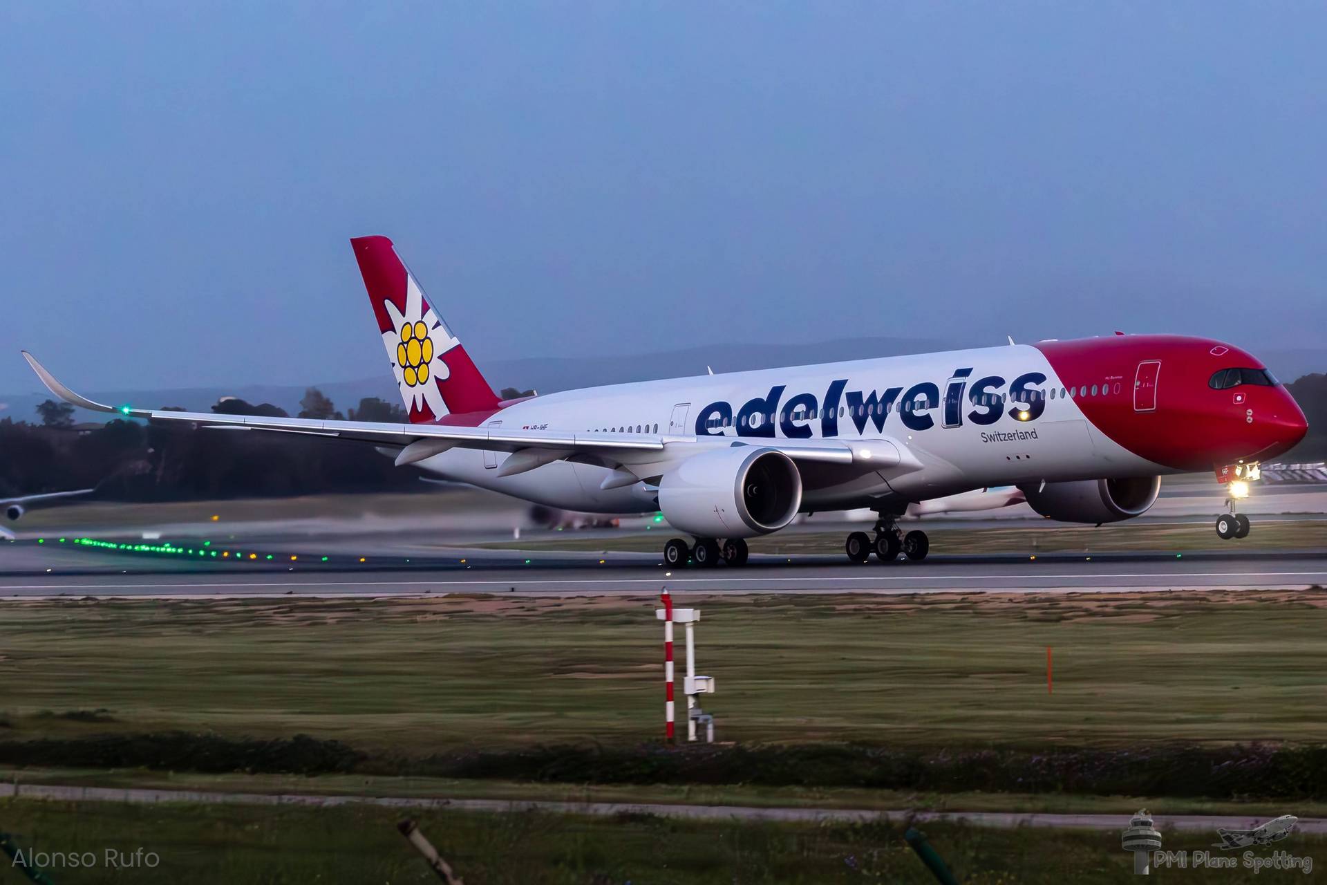 El pasado viernes, 4 de abril de 2025 el nuevo Airbus A350 de la compañía suiza Edelweiss visitó por primera vez el Aeropuerto de Palma de Mallorca.
