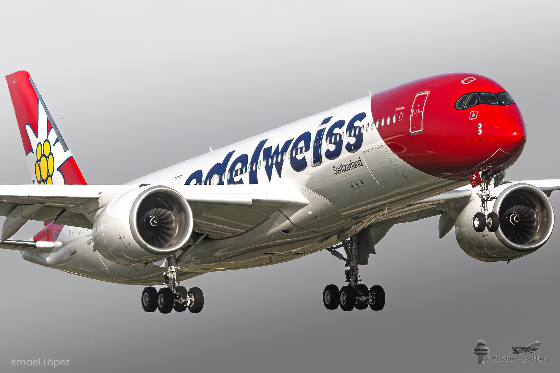 El pasado viernes, 4 de abril de 2025 el nuevo Airbus A350 de la compañía suiza Edelweiss visitó por primera vez el Aeropuerto de Palma de Mallorca.